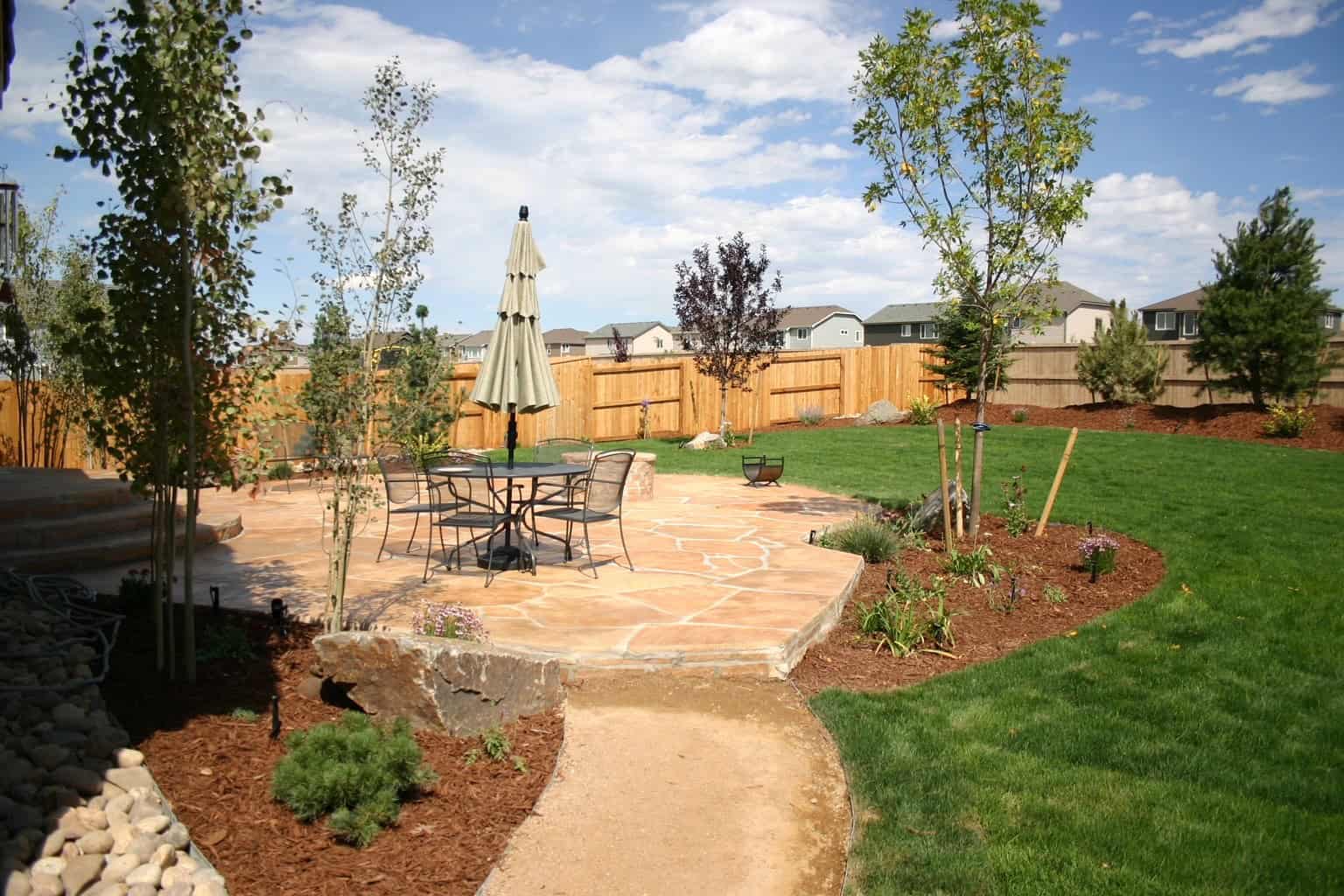 Because Littleton’s soil expands in winter, our grading and base prep are engineered for stability. We integrate downspout solutions, dry creekbeds, swales, and hardscape transitions so the yard drains correctly and stays usable year-round.
